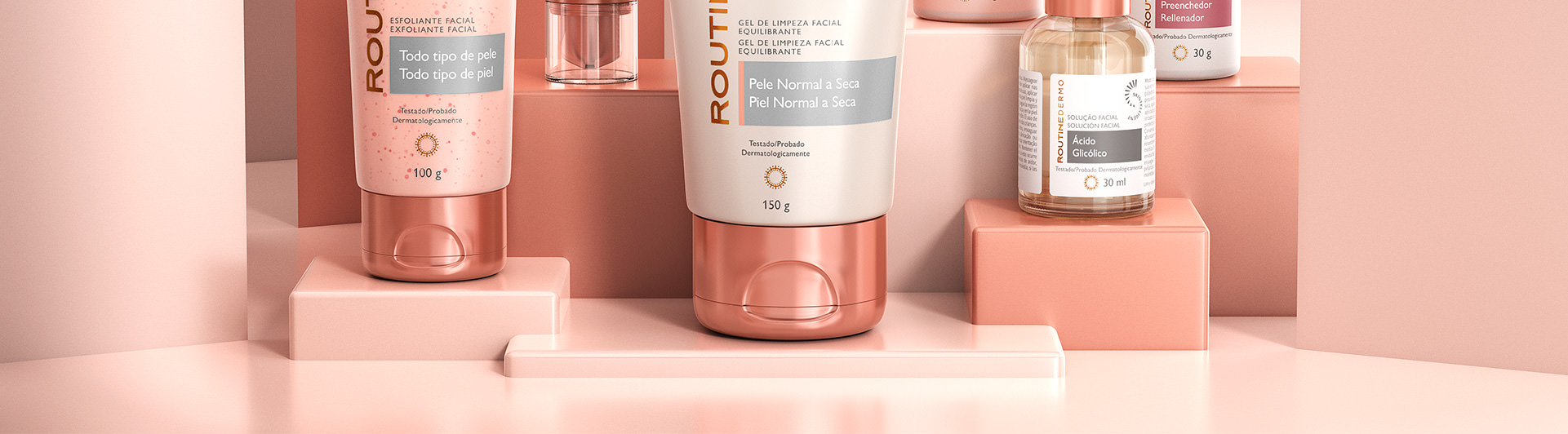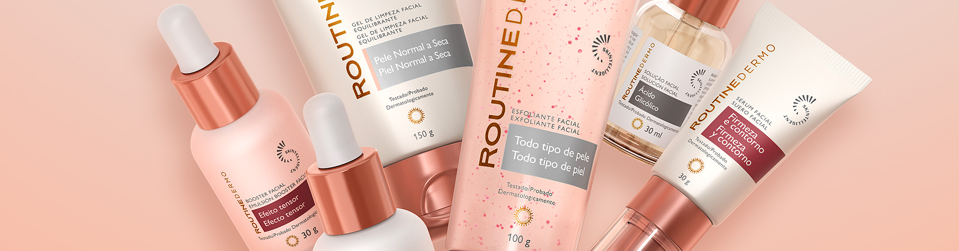 A linha de cuidados faciais Routine Dermo traz fórmulas aliadas à tecnologia Skintelligent. Com ativos de alta performance, entrega resultados eficazes e visíveis para a pele, auxiliando na atuação contra os mecanismos de envelhecimento cutâneo, dentro das necessidades cronológicas de cada pele.